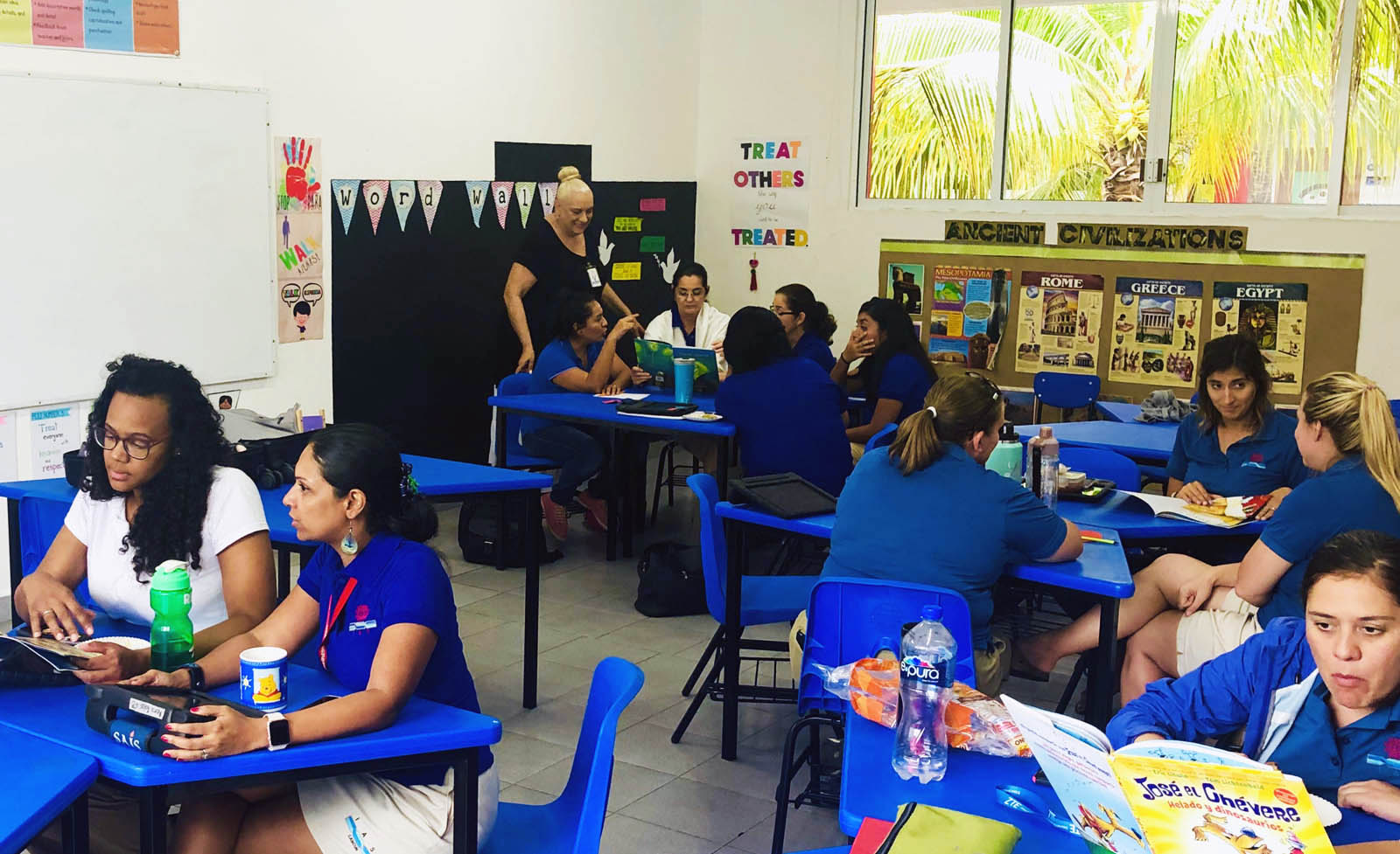 Miss Ely now resides in Guadalajara and continues not only to put Scholastic books, decorative material, platforms, math curriculum in both English and Spanish, into the hands of Mexico’s children but also teaches teachers in schools throughout the country how to write poems, reading comprehension exams, tests, as well as, any subject you may need further information on.
